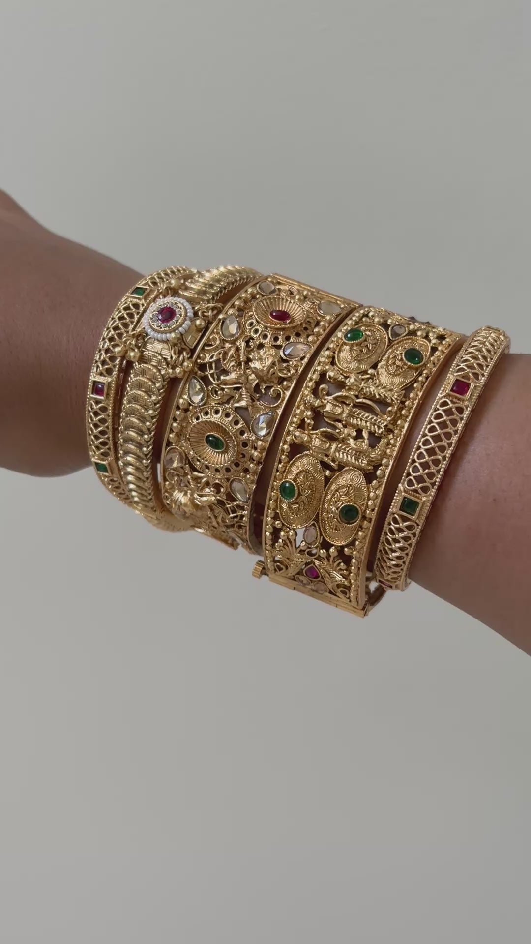 Enjoy our decadent gold bangle stack, sourced from Delhi. Each bangle stack comes with 5 individual pieces.